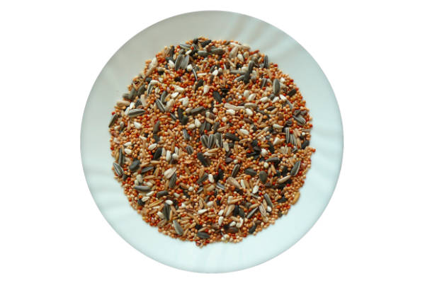 gelbe Hirse, Nackthafer, gestreifte Sonnenblumen, rote Hirse, weiße Hirse, Saflor, Buchweizen, schwarze Sonnenblumen, Kanariensaat, Leinsamen, schwarzer Hafer, Sorghum
