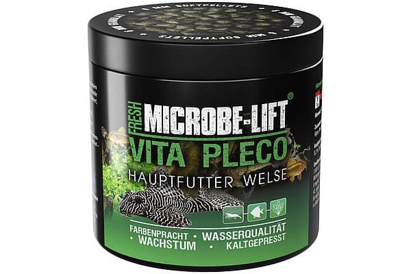 Vita Pleco ist ein kaltgepresstes, schnell sinkendes Soft-Futtergranulat zur optimalen Ernährung Ihrer Süßwasserwelse. Durch die sehr hochwertigen und speziell aufeinander abgestimmten Inhaltsstoffe wird die natürliche Farbgebung und das Wachstum optimiert, sowie Ausscheidungen auf ein Minimum reduziert.